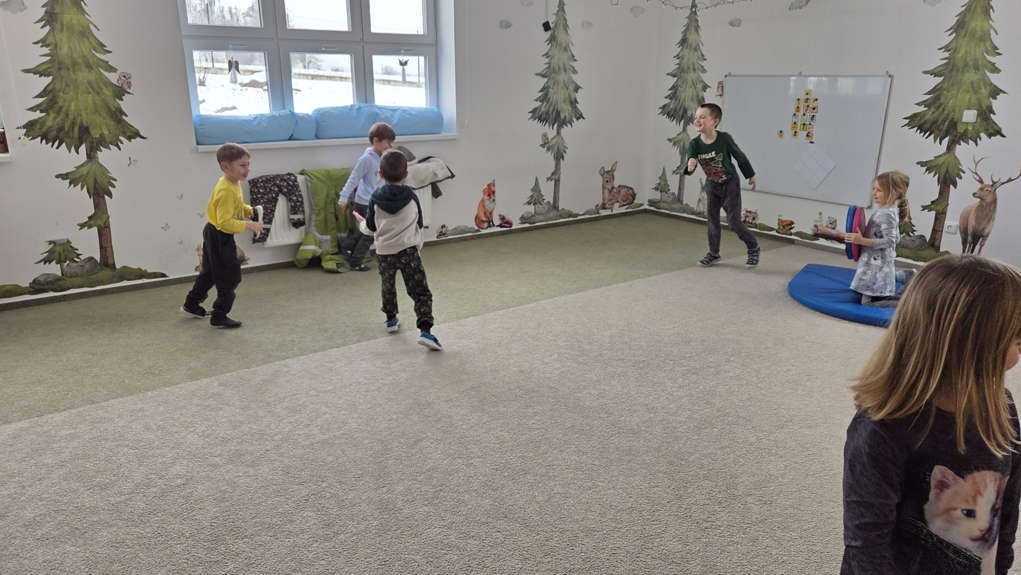 Po Vánocích u nás proběhla vánoční besídka, naučili jsme se další písmenka. Začínáme psát perem. O hudebce jsme hráli na boommakery, o matematice počítali na tabletech a počítali s běháním.