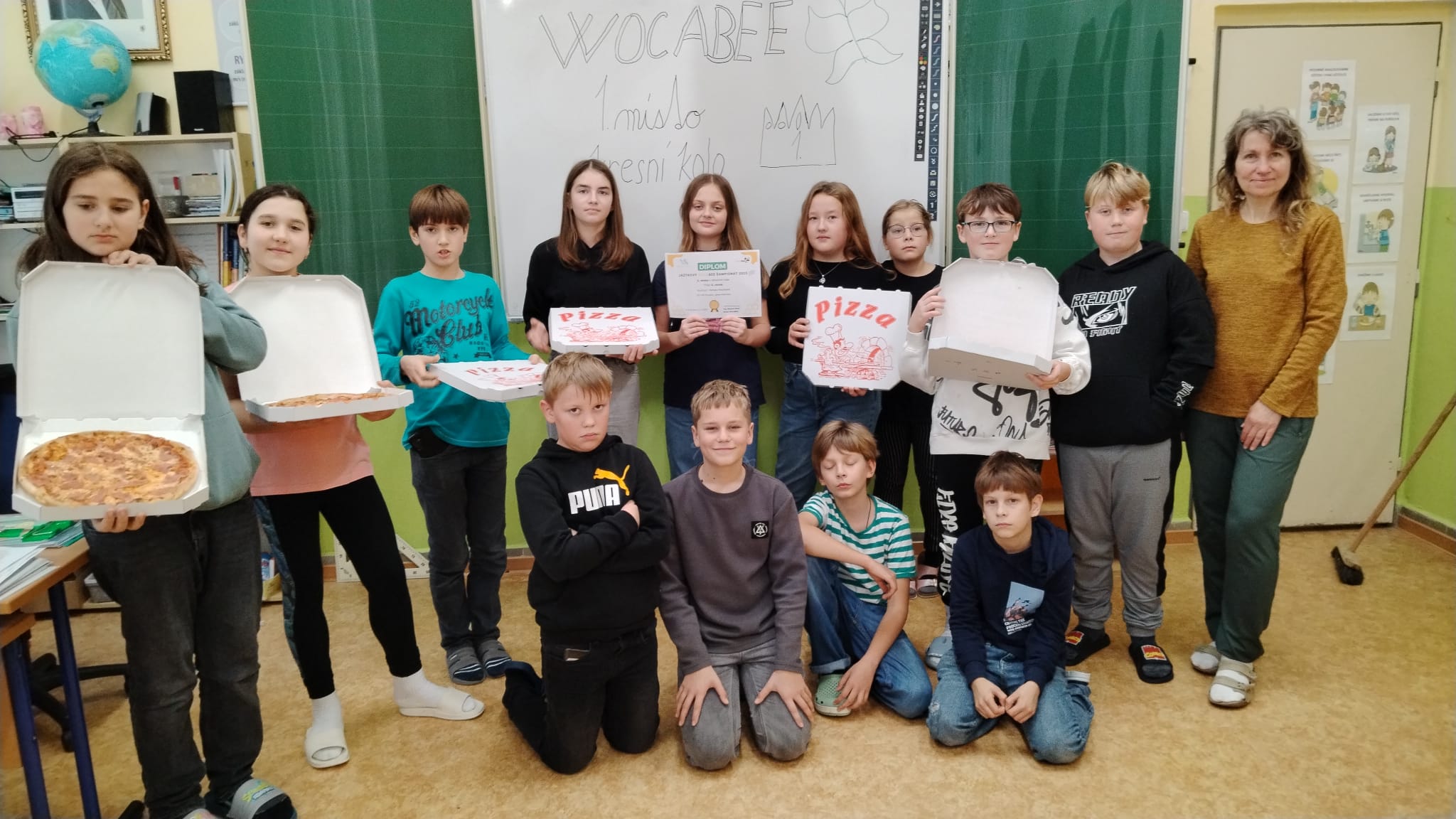 Žáci 5. třídy získali 1. místo v okresním kole WocaBee s průměrným počtem 2364 bodů na žáka za 2 hodiny ( 1 slovíčko za 1 bod ). Úspěch oslavili výbornou pizzou z Rynárce.